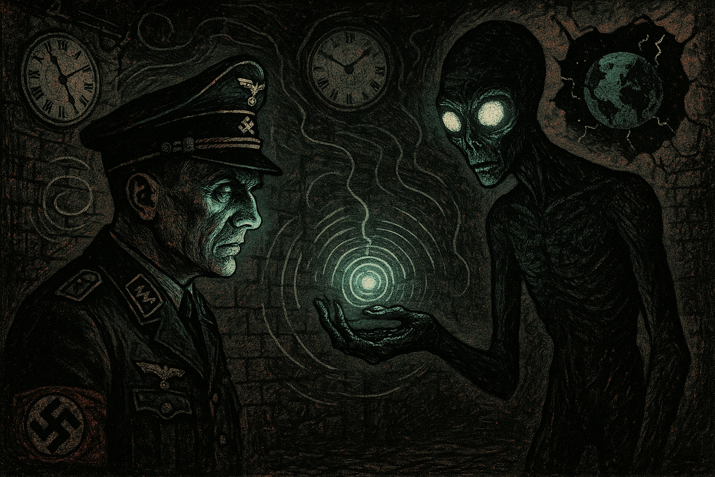 La intención de estos seres al darle tecnología a Hitler era evitar que perdiera la guerra. Esto los llevó a experimentar con la manipulación del tiempo. La idea era que, si perdían la guerra en una línea de tiempo, viajarían a otra para “arreglarlo”. Hay un capítulo de Rick & Morty donde ellos destruyen el planeta Tierra, lo vuelven inhabitable. En lugar de arreglarlo, deciden simplemente trasladarse a una línea de tiempo paralela y continuar sus vidas allí (Qué solución tan práctica!).